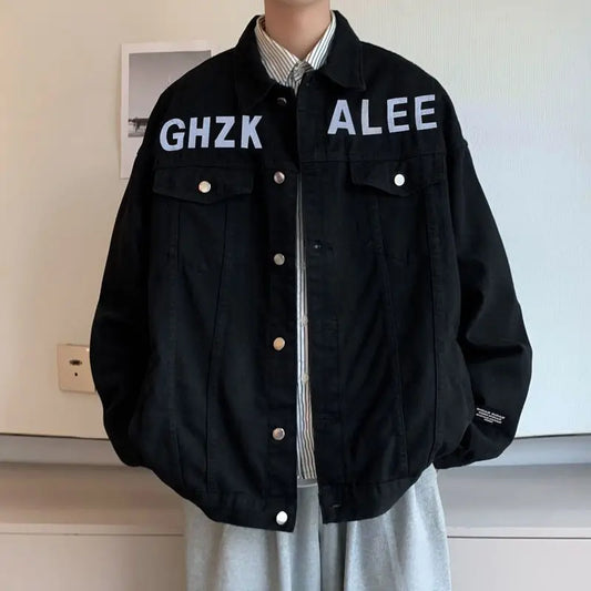 saferido Korean Jean jacket Hip hop Y2K Men's Spring and Autumn Vintage Jacket Trendy Brand Loose Vintage Denim