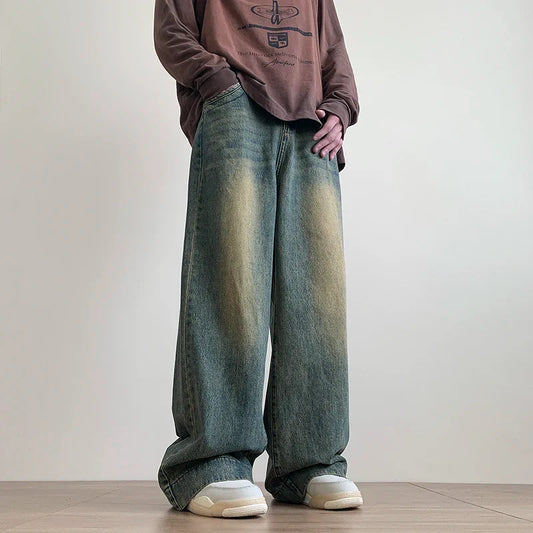saferido Jeans men Autumn Loose Denim pants Wide Leg Jean Male Straight Denim Pants Harajuku Vintage Jean Trouser Streetwear Clothes