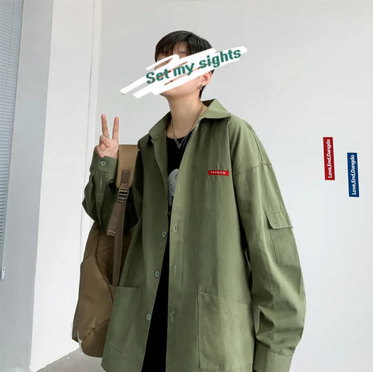 saferido Men Harajuku Solid color Mens Streetwear Long Sleeve Male Vintage Korean Fashions shirts Oversized shi