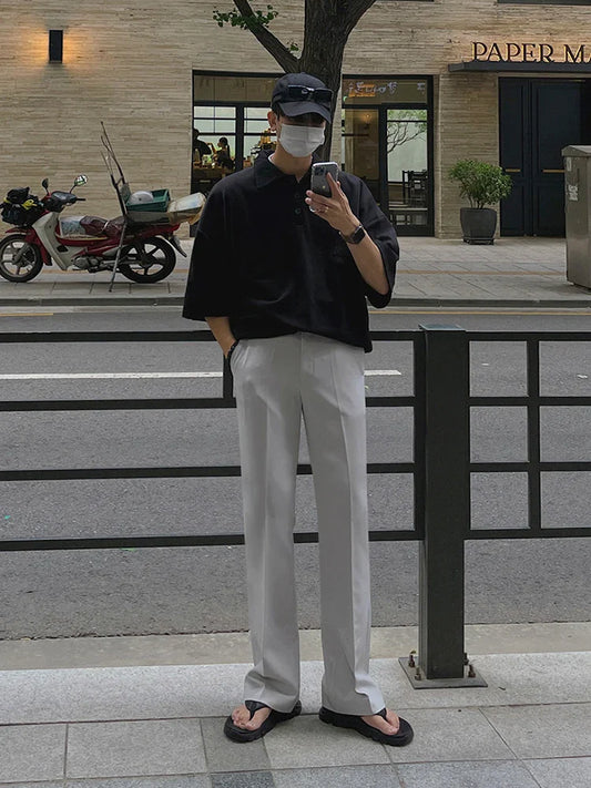 saferido Men's Short Sleeve Shirt 2024 Summer New Korean Style Vintage Lapel Solid Color Casual Male Top Fashion Trend