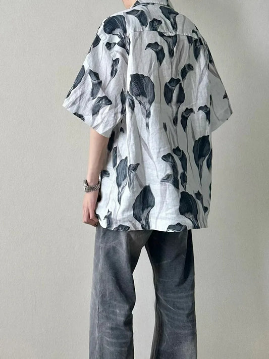 saferido Men's Shirts Y2k Print Vintage Handsome Korean Beach Style Hawaiian Single Breasted Vocation Baggy All-match Summer Short Sleeve