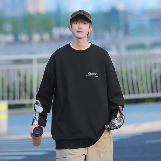 saferido Sweatshirt for Men Long Sleeve Pullover Autumn Vintage Embroidery Sweatshirt Korean Trend Tops Boyfriend Clothing Padded Thicker