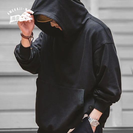 saferido Workwear Men's Vintage Side Opening Oversize Grey Hooded Sweater Loose and Lazy Style Large Coat Head