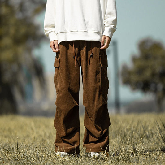 Streetwear Pants For Men Fashion Loose Pockets Cargo Pant Autumn Casual Solid Color Corduroy Trousers Mens Vintage Lantern Pants
