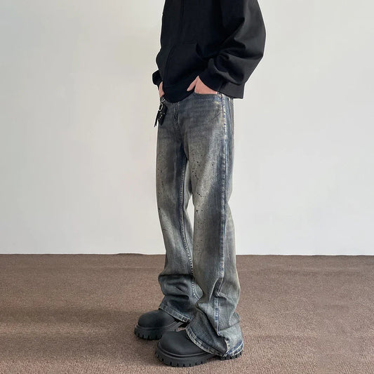 Streetwear Vibe Vintage Distressed Washed Trousers Jeans Yellow Mud Dyed Zipper Split Straight Jeans Men's and Women's Clothing