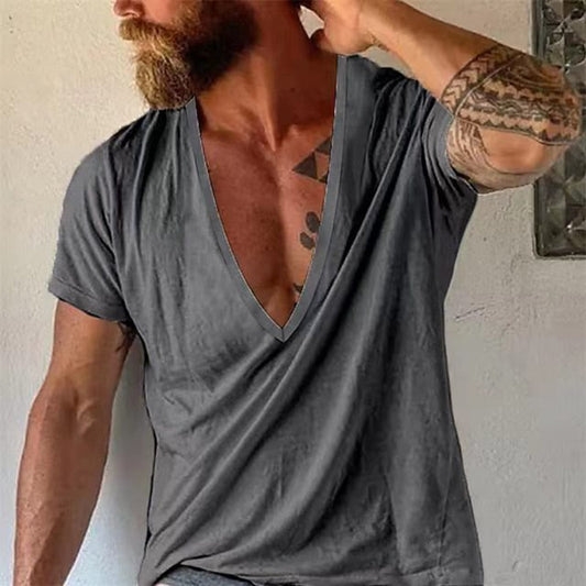Vintage Loose Cotton T Shirts Men Casual V Neck Short Sleeve Solid Tees Spring Summer Fashion Pure Color Clothes Men's Tops