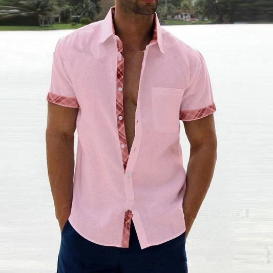 Vintage Plaid Print Mens Patchwork Shirts Fashion Loose Short Sleeve Button Cardigan Tops Men Clothes Spring Summer Casual Shirt