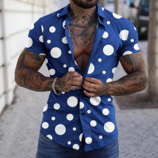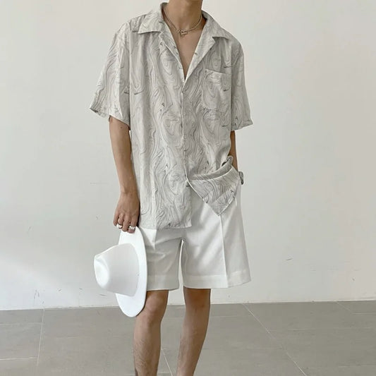 Vintage Wavy Print Short Sleeve Oversized Button Up Shirts for Men Summer Loose Casual Beach Shirt Hawaiian Top Quality