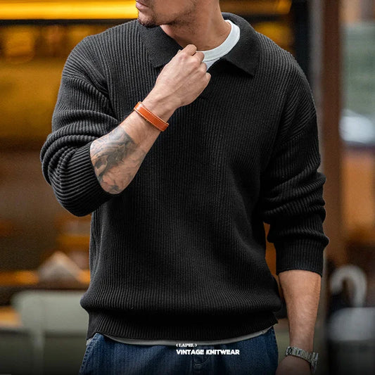 Vintage Crew Neck Sweater Loose Vertical Strip Winter Basic Pullovers for Male Casual Retro Knitwear Lapel Soft Warm