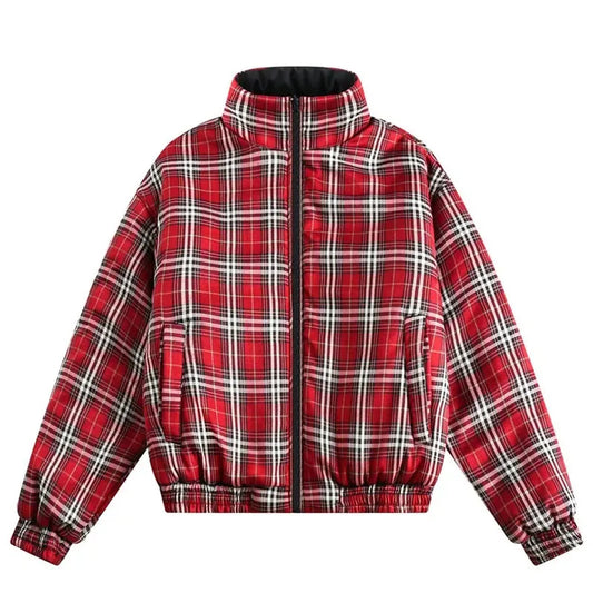Vintage Double-sided Jacket Parka Men Women Cropped Plaid winter Thicken Stand Collar Loose Coat Street Outwear Lightweight New