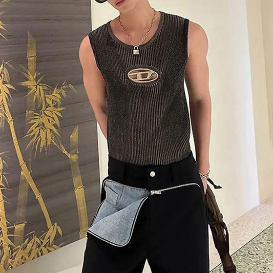 Metal Design Hollow Vest Men's Summer American Retro Sleeveless T-shirt Top Unisex Tank Top Tide Brand Sexy Y2k Streetwear