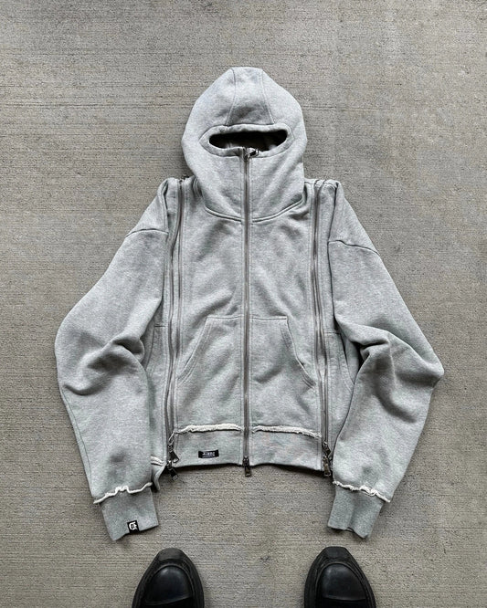 Streetwear Zip Hoodie Shorts Suit Y2K Clothes Mens Two Piece Set Hip Hop Rock Double Layer Retro Sweatshirt Casual Shorts Suit