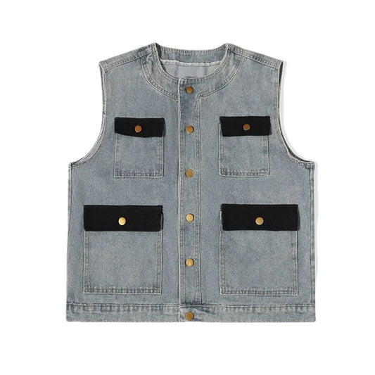 Men's Sets Cargo Denim 2 Piece Outfits Male Patchwear Jeans Pants + Vests Sleeveless Casual Korean Streetwear Hip Hop
