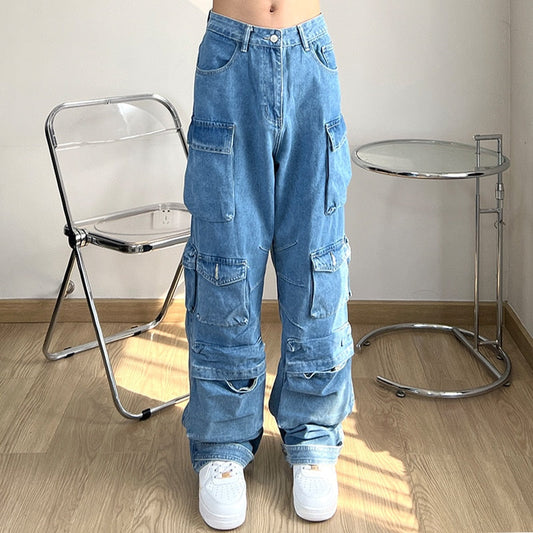 Pockets Y2K Streetwear Ripped Jeans Cargo Pants For Men Clothing Straight Vintage Hip Hop Denim Trousers Ropa Hombre