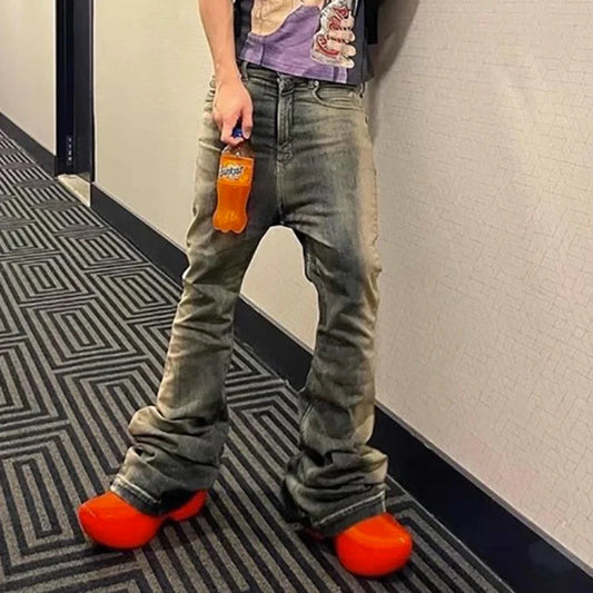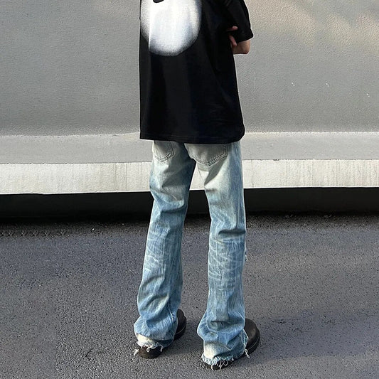RO Style Gradient Washed Sashes Flare Jeans Unisex Streetwear Baggy Y2K Bell-bottoms Harajuku Loose Casual Denim Trousers