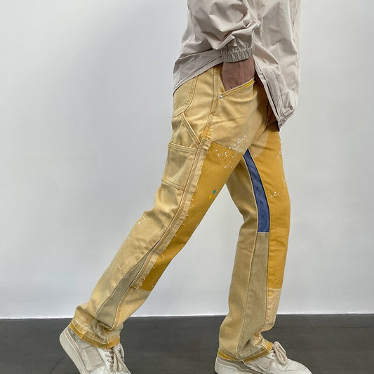 Retro Hip Hop Splash Ink Slim Jeans Distressed Colored Patchwork Denim Jean Men High Street Fashionable Graffiti Denim Trousers