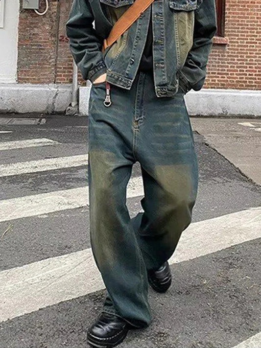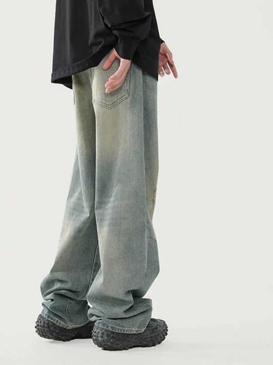 Retro Vintage Jeans For Men Y2k Street Hip-Hop Loose Wide Leg Straight Leg Pants Trend Retro Men'S Clothing