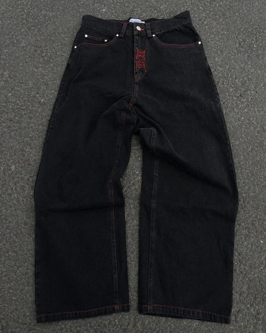 Retro Street Cross Skull Embroidery Baggy Jeans Y2k Men Women Loose Casual Straight Wide Leg Denim Pants High Waisted Pants