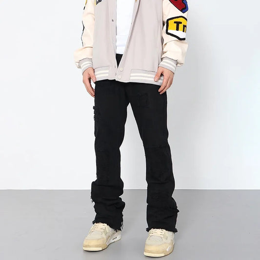 Ripped Jeans Men Black Streetwear Y2k Denim Pants Autumn Winter Casual Fashion Street Vintage Cool Stacked Straight Leg Trousers