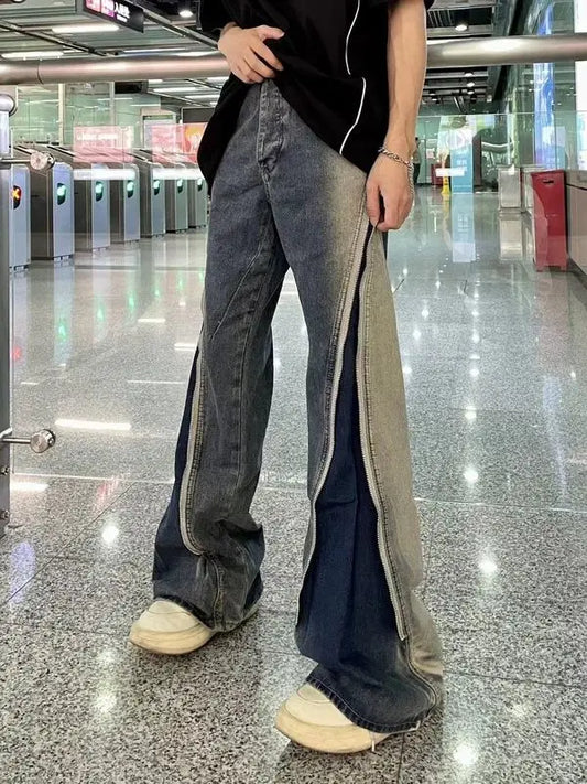saferido American retro vintage vintage slightly flared jeans men's loose spring and autumn floor pants