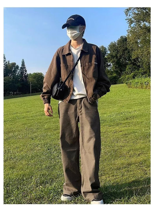 saferido classy outfits men Maillard Jeans Men's American Retro Brown Pants Men's Loose Straight Logging Overalls Long Pants