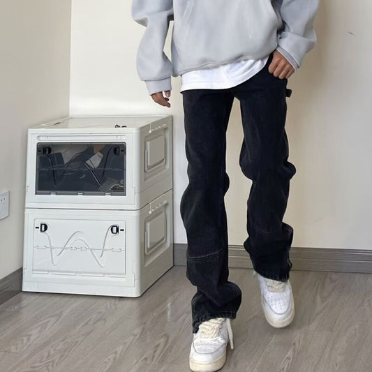 saferido drip outfit men Cityboy American Wide Leg Workwear Jeans Men's Ins Straight Loose Vintage Washed Workwear Trousers