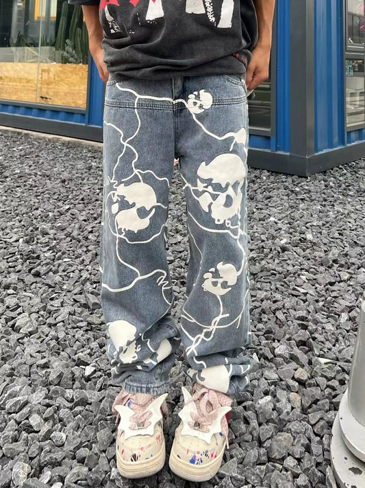saferido Skull Printed Man Woman Black Jeans Trousers for Men Trends Clothes Pants Men's Punk Trendyol Streetwear Hip Hop Casual Straight