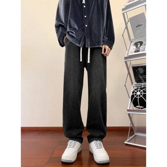 saferido Spring And Autumn Harajuku Hong Kong Style Simple Loose Trend Ins Versatile Casual Drawstring Straight Long Pants Jeans For Men