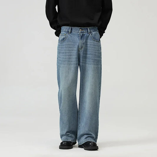 saferido Spring autumn Half Elastic Waist Trousers Fashion American Retro Jeans Men's Loose Straightclean fitWide-leg pants