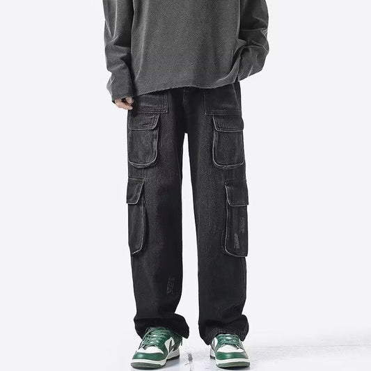 saferido streetwear men outfits American Vibe National Fashion Ins High Street Jeans Men's Design Sense Niche Multi-Pocket Workwear Wide Leg Straight Trousers