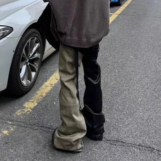 saferido Style Ribbons Patchwork Gradient Stacked Wax Pants Unisex Straight Streetwear Baggy Y2K Flare Jeans Oversized Loose Cargos