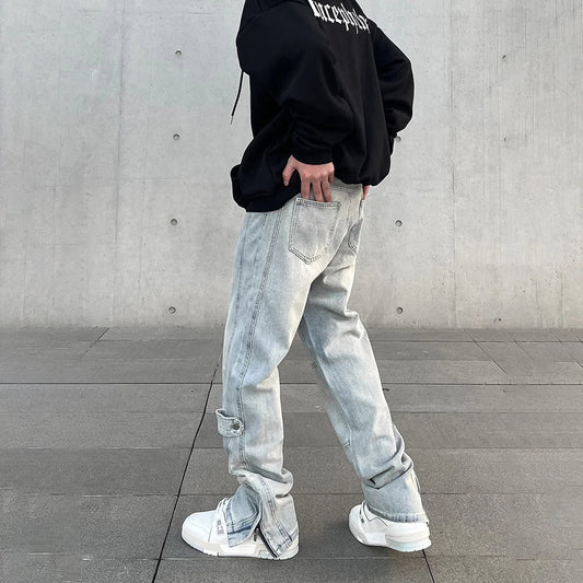 Streetwear Jeans Men Y2k Autumn Fashion Casual Zip Flared Trousers Slim Blue Vintage Winter Stacked Street Original Denim Pants