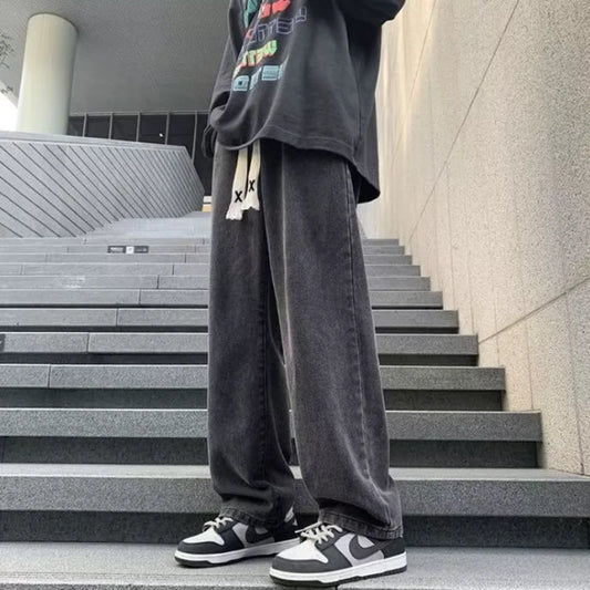 Streetwear Men's Baggy Jeans Pants Classic All-match Solid Color Straight-leg Denim Wide-leg Pants Male Y2k Casual Trousers