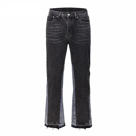 Vintage Patchwork Flare Jeans Urban Men Streetwear Wide Leg Denim Pant Hip Hop Black Colorblock Slim Fit Denim Jeans for Men
