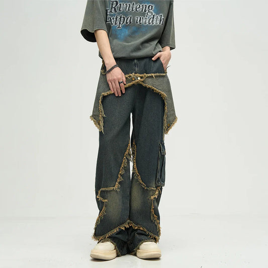Y2K Fashion Patchwork Black Baggy Flare Jeans Pants For Men Clothing Straight Women Casual Long Trousers Ropa Hombre