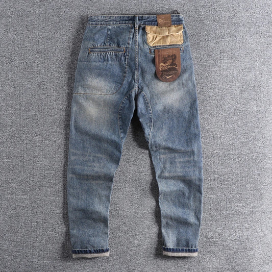 Contrast color pocket autumn American tooling retro light-colored washed youth long pants slim jeans men