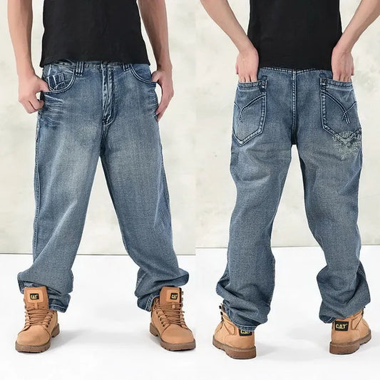 HOT New Large Size 30-44 46 Jeans Fashion Loose Big Pockets Hip-Hop Skateboard Casual Men Denim Blue & Black Design Brand