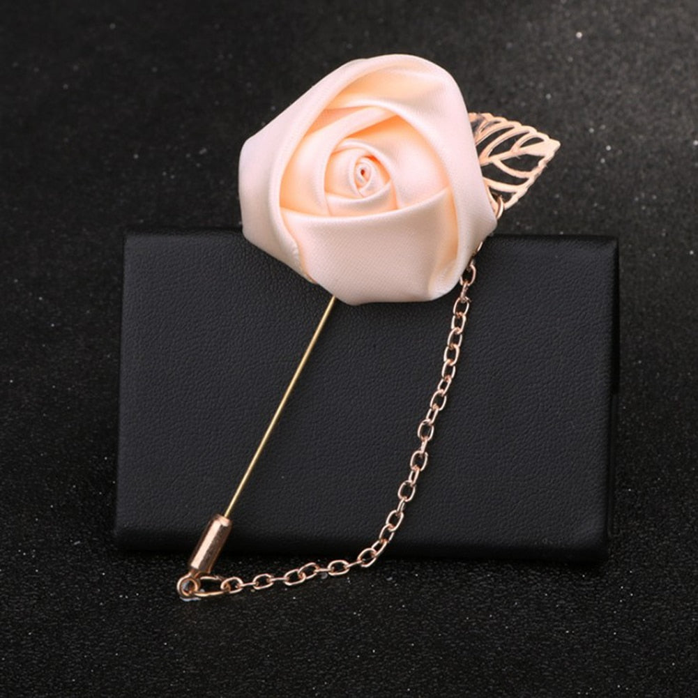 1 Pcs Men Rose Flower Golden Leaf Fashion Brooch Pin Suit Lapel New Men Wedding Boutonniere Brooch Jewelry