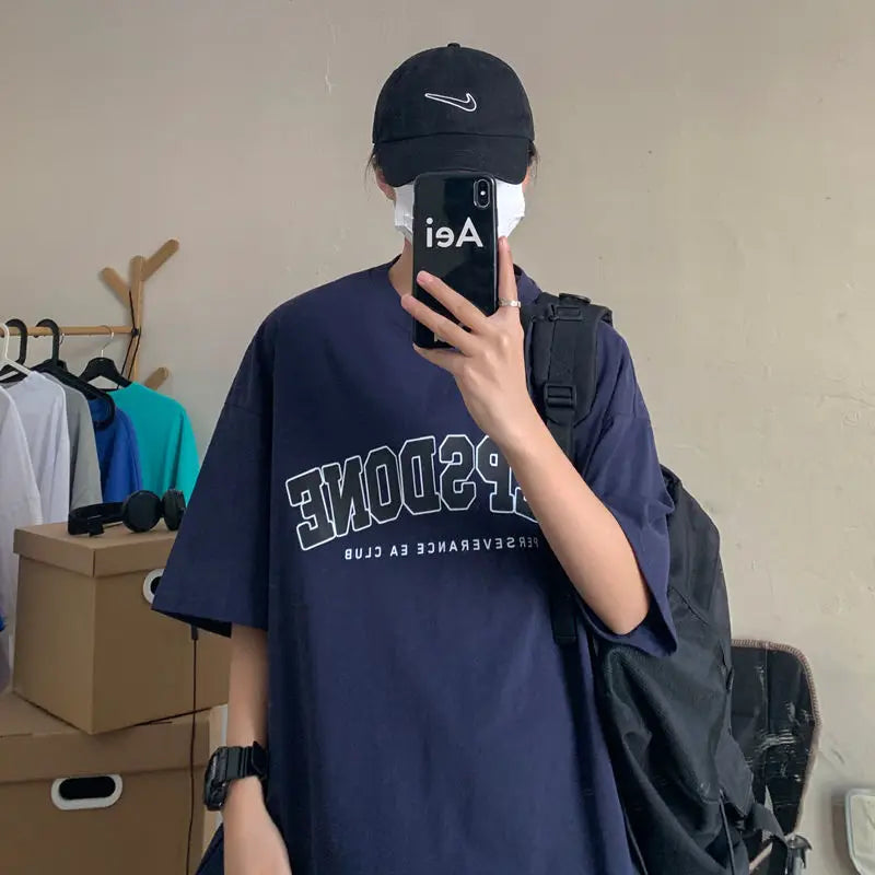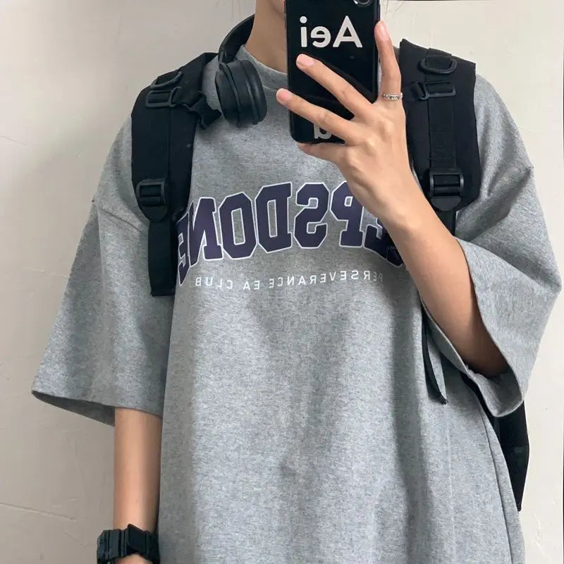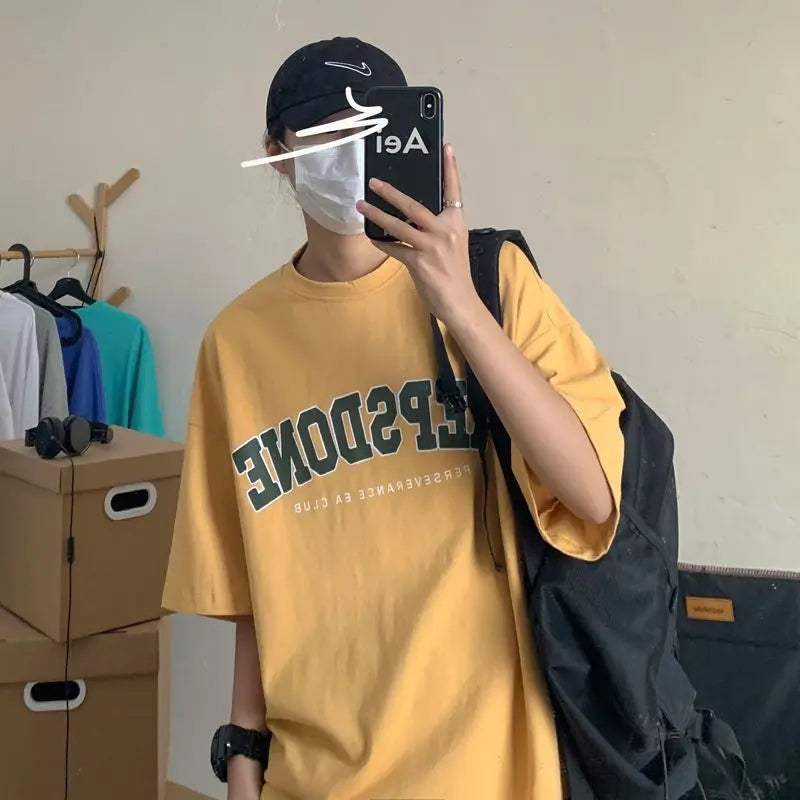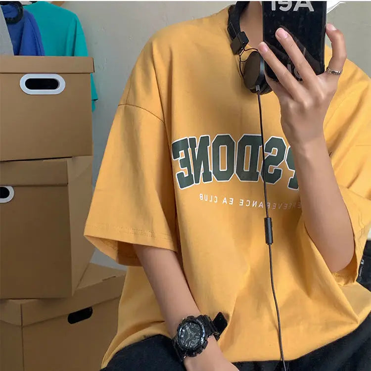 100% Pure Cotton Short-sleeved T Shirts for Men New Ins Hong Kong Style Letter Print Harajuku Simple Casual All-match T-shirt