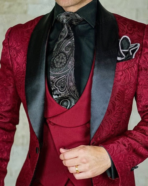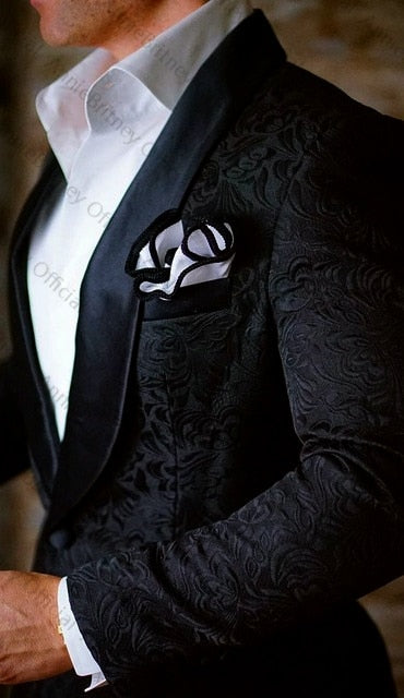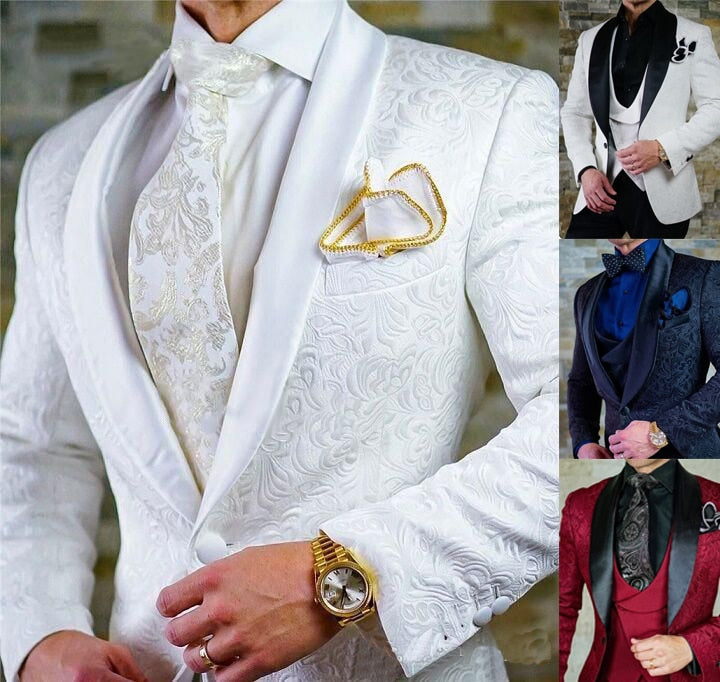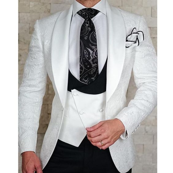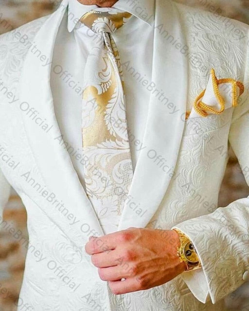 Custom size Jacquard Groomsmen white Groom Tuxedos Shawl Lapel Men Suits Wedding Prom Best Man Blazer Jacket with Pants Set