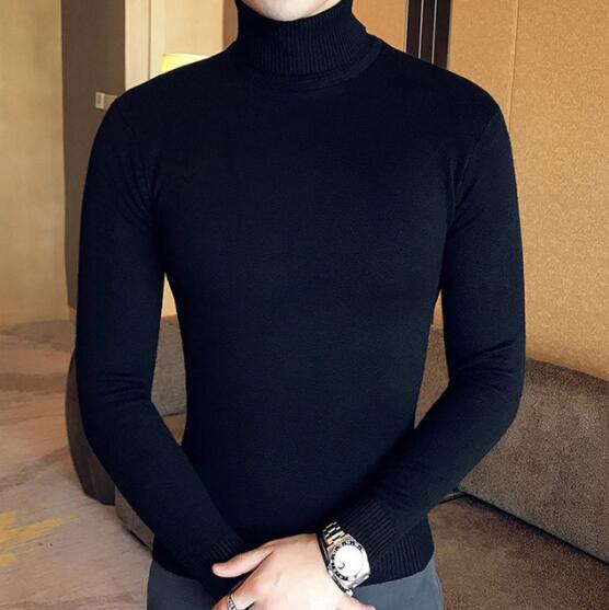 Korean Slim Solid Color Turtleneck Sweater Mens Winter Long Sleeve Warm Knit Sweater Classic Solid Casual Bottoming Shirt
