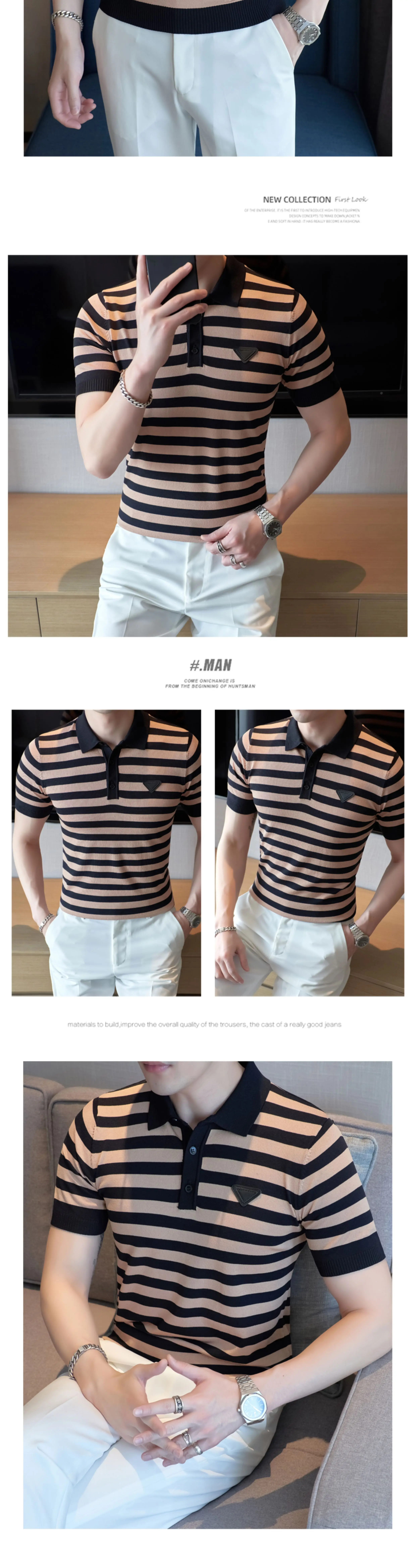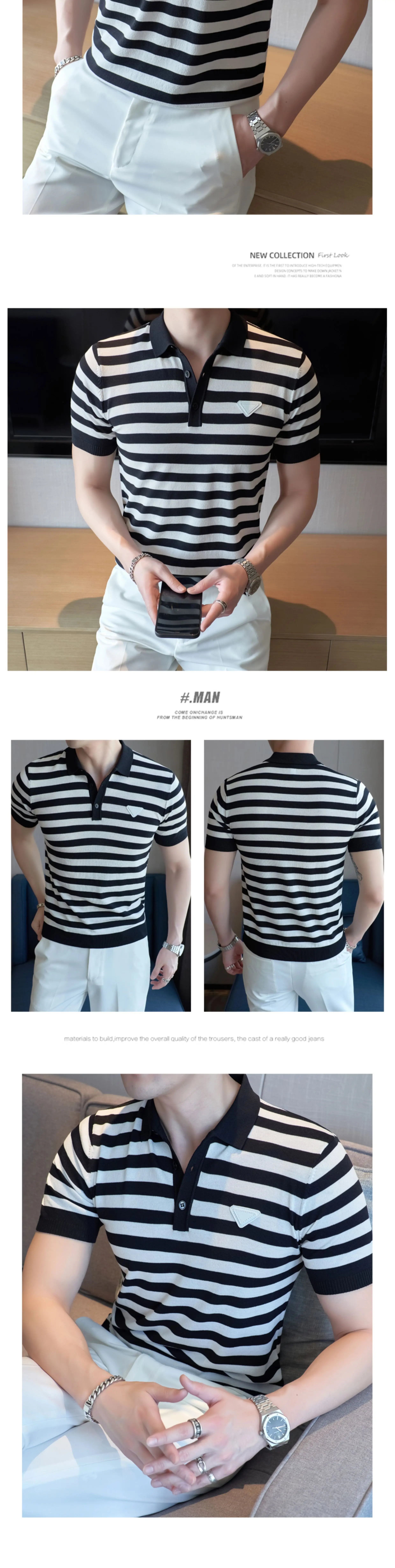 Fashion Oblique Stripes Polo T Shirts For Men Clothing Design Business Casual Short Sleeve Knitted Polos Homme S-4XL