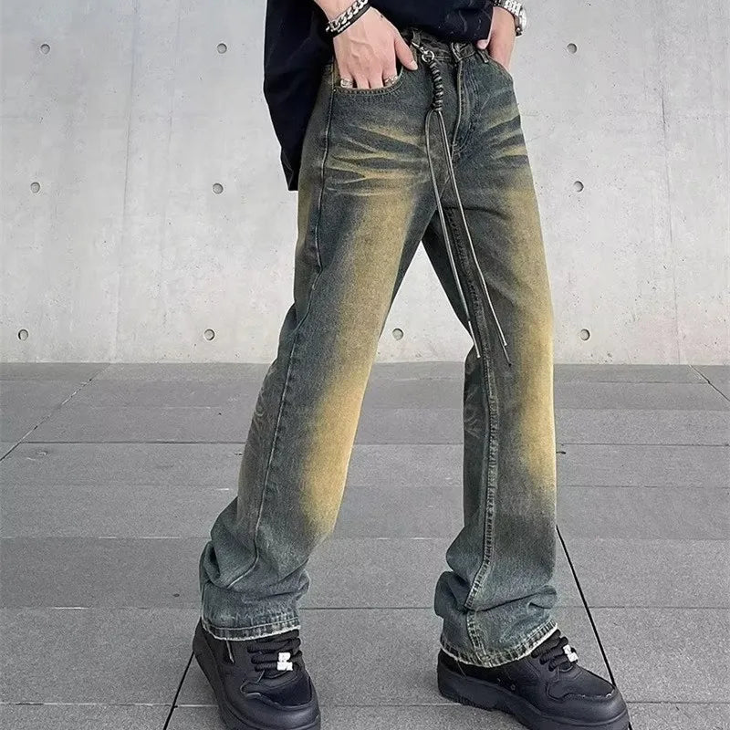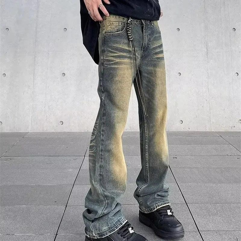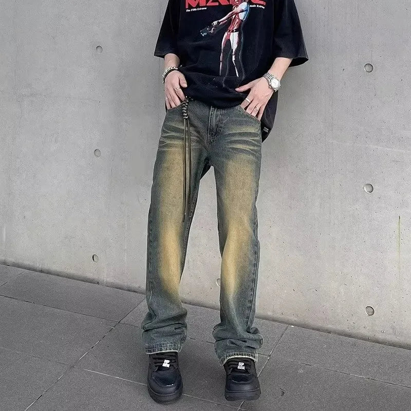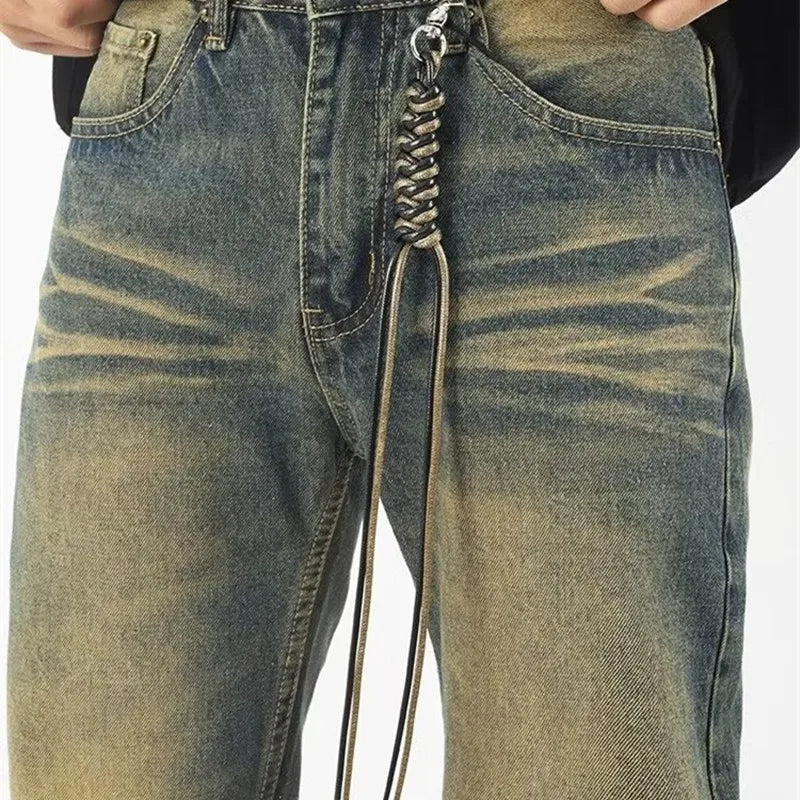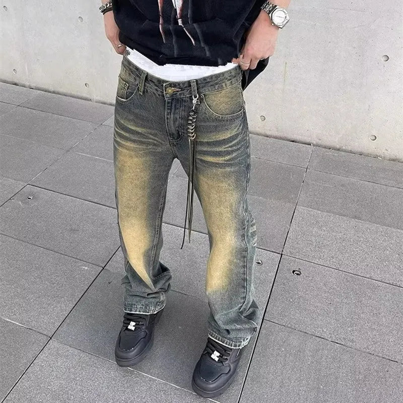 Y2K Fashion Old Blue Pendant Baggy New Jeans Kpop Pants For Men Clothing Straight Vintage Women Denim Trousers Ropa Hombre