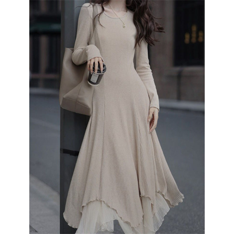 2025 [Aisi Dress Women] Autumn and winter imitation cashmere gentle temperament women's high-end knitted skirt with coat