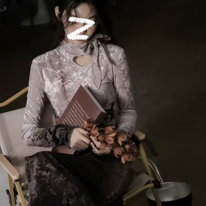 2025 new national style new Chinese style gradual change waist thin temperament bronzing retro cheongsam dress M1502