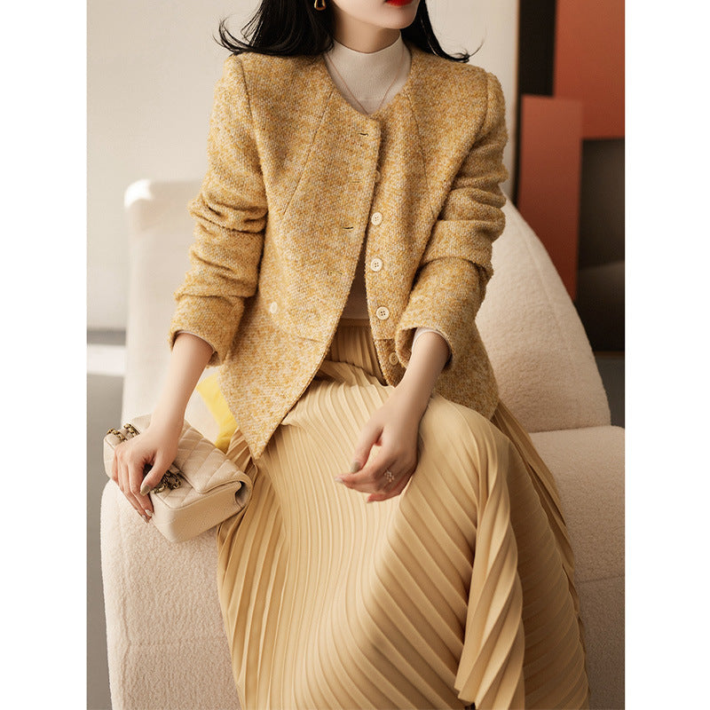 2025 Premium wool tweed small fragrant jacket short spring and autumn new spring clothing high-end women's clothing gold gray