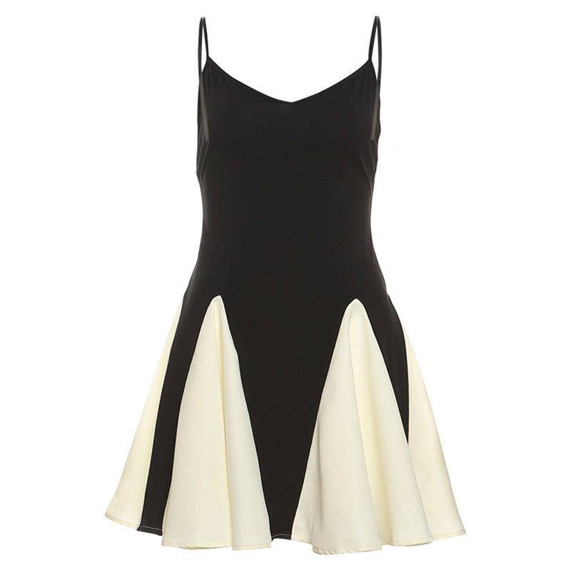 2025 style popular winter new women's clothing fashion contrasting color splicing versatile slim and thin suspender dress