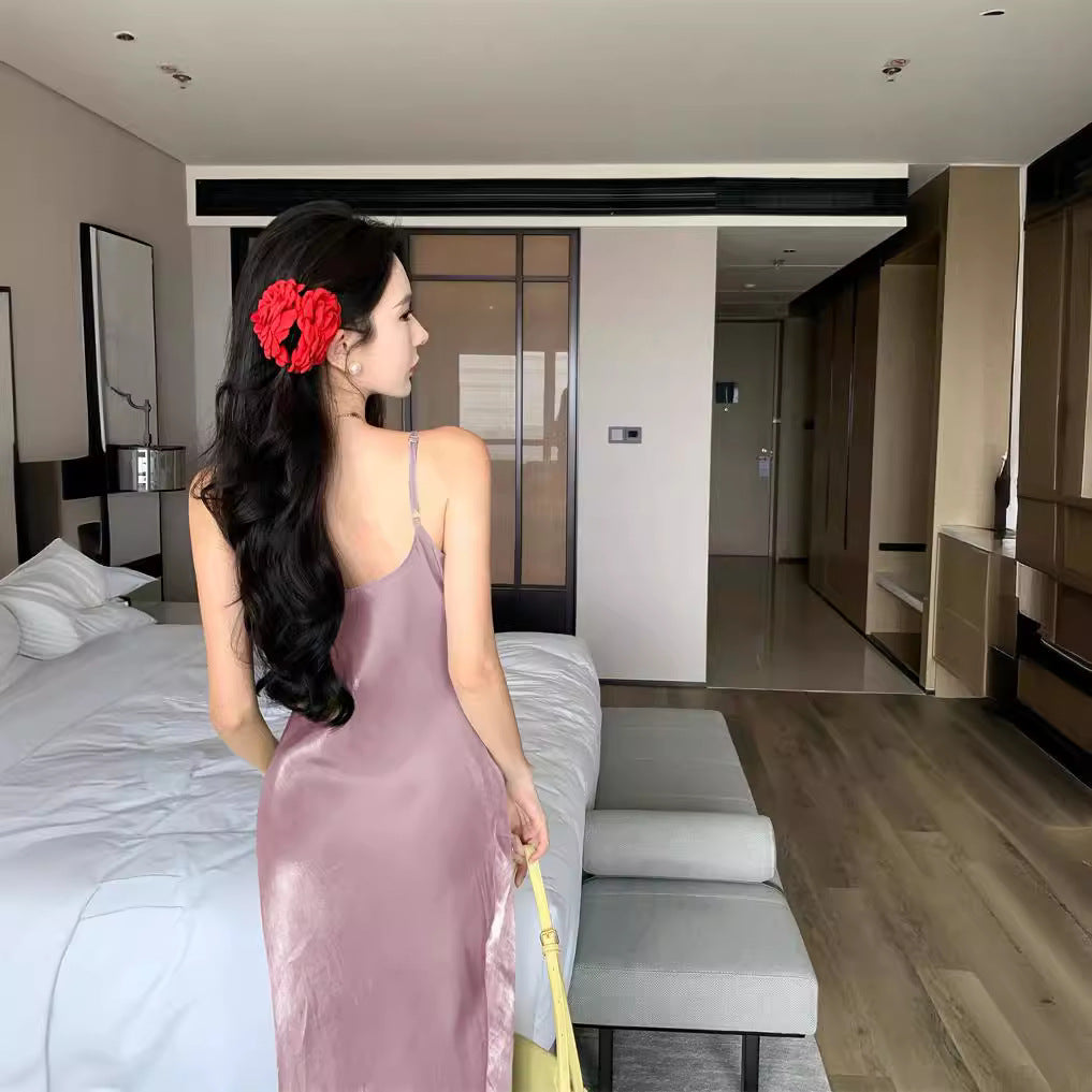 2025 vacation style fish tail hip dress women's summer pendant feeling slim suspender skirt temperament banquet dress skirt