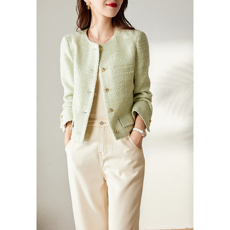 2025 Wool tweed spring and autumn small fragrant jacket new autumn clothing short candy green top women's spring clothing