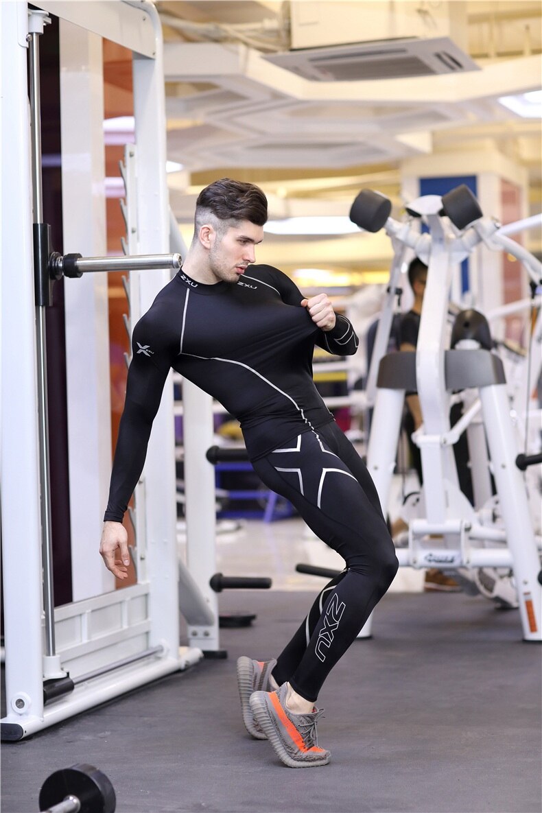 2XU Men's Thermal underwear Sets Running Compression Sport Suits Basketball Tights Clothes Gym Fitness Jogging Sportswe